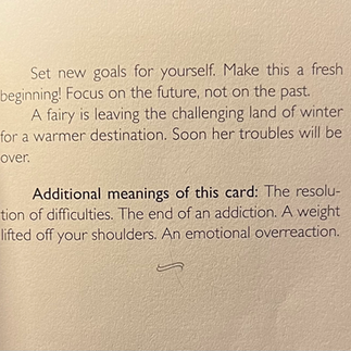 This week, I've used the tarot cards –Fairy Tarot by Doreen Virtue & Radleigh Valentine – Ten of Winter.